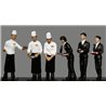 Senior Citizens - N Scale This scene includes both a man and a woman with canes, one woman with a walker and two men seated on a park bench. Set contains 6 pieces. Colors may vary from actual product.