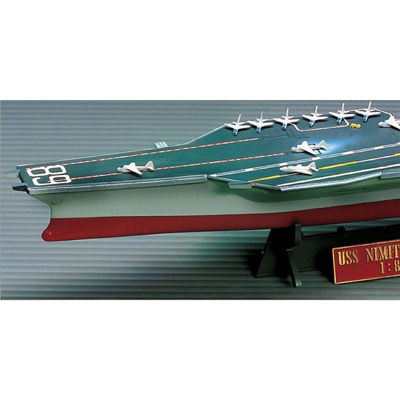 The first Nimitz-class aircraft carrier, the Nimitz CVN-68, was launched in 1975 and led to the production of nine sister vessels. These impressive beauties are 1,000 feet long and displace more than 103,000 tons. The carriers were pivotal in events such as the Libyan raids in the 1980s, the Iraqi invasion of Kuwait, and Operation Enduring Freedom in Afghanistan. This kit with 178 grey plastic parts faithfully recreates the USS Nimitz CVN-68 Aircraft Carrier in 1/800 scale. The fully assembled model is 42.16cm long.