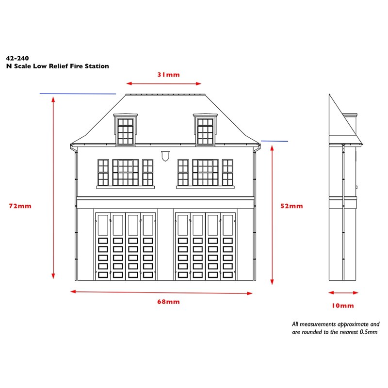 Protecting the local town or city from fires and other dangerous incidents, the Low Relief Fire Station is essential if you want to make the residents of your miniature world feel safe. Complete with large, imposing doors and with details such as etched window frames plus gutters and downpipes, this model is a reassuring addition to any scene.
