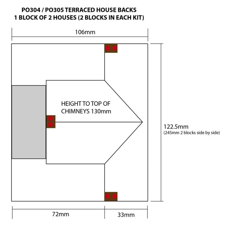 The low relief house backs come as 2 blocks of 2 houses, perfect for placing against a wall if space is limited.
