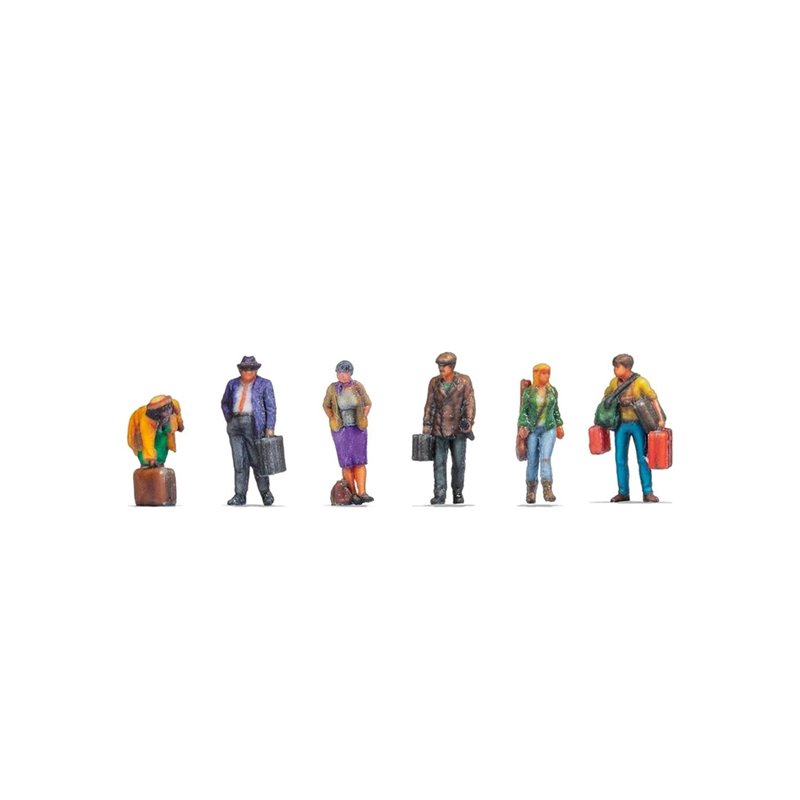 A set of pre-painted figures in various poses ready to be placed on your model railway scene or diorama.