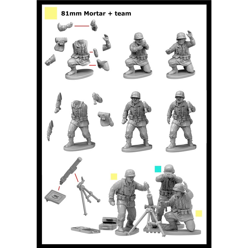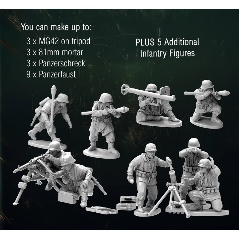 Following the huge success of the German Infantry set, we had endless requests for a set which had more of the heavy weapons sprue... so we did just that.