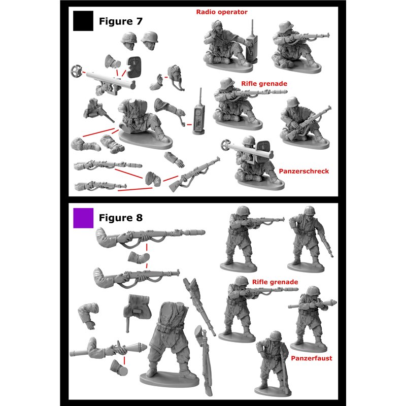 Figure 8 options, can be armed with rifle in various poses, rifle grenade and Panzerfaust