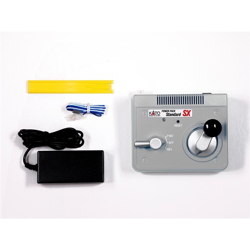 This pack contains a complete oval of Kato Narrow Gauge Track with a Kato SX Controller and power pack, everything you need to set up and play, just add your favorite 009 or HOe scale locomotive.