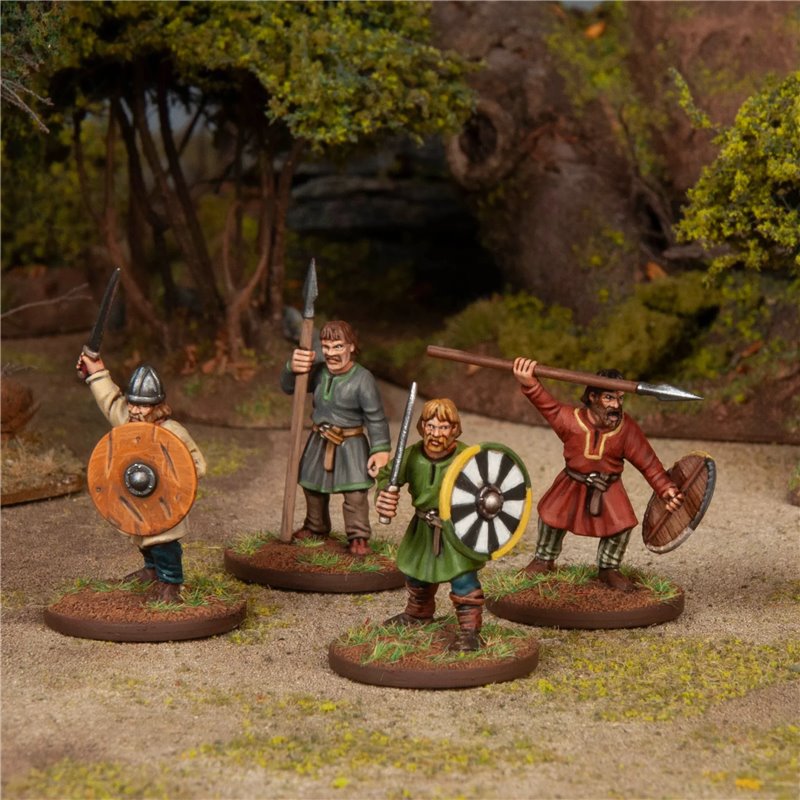This hard plastic set allows you to build up to 48 Dark Ages Warriors with either spear or sword and shield. There are a HUGE variety of head types that allow you to build the following types: Goths, Saxons, Franks, Late Romans, Britons, and even later Dark Ages Vikings and Saxons with spangenhelm. The entire Decline and Fall range is designed to mix and match from the various sets to create a huge variety of styles.