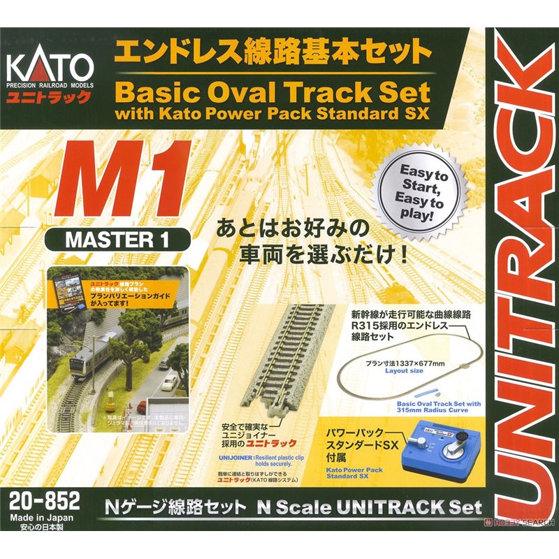The Unitrack BM1 oval track set provides you with everything you need to set up your first Kato layout, this includes an oval of track measuring 1337 x 677mm and a Kato controller that is fully compatible with Kato's plug-and-go switches and powered points should you wish to expand your layout.
