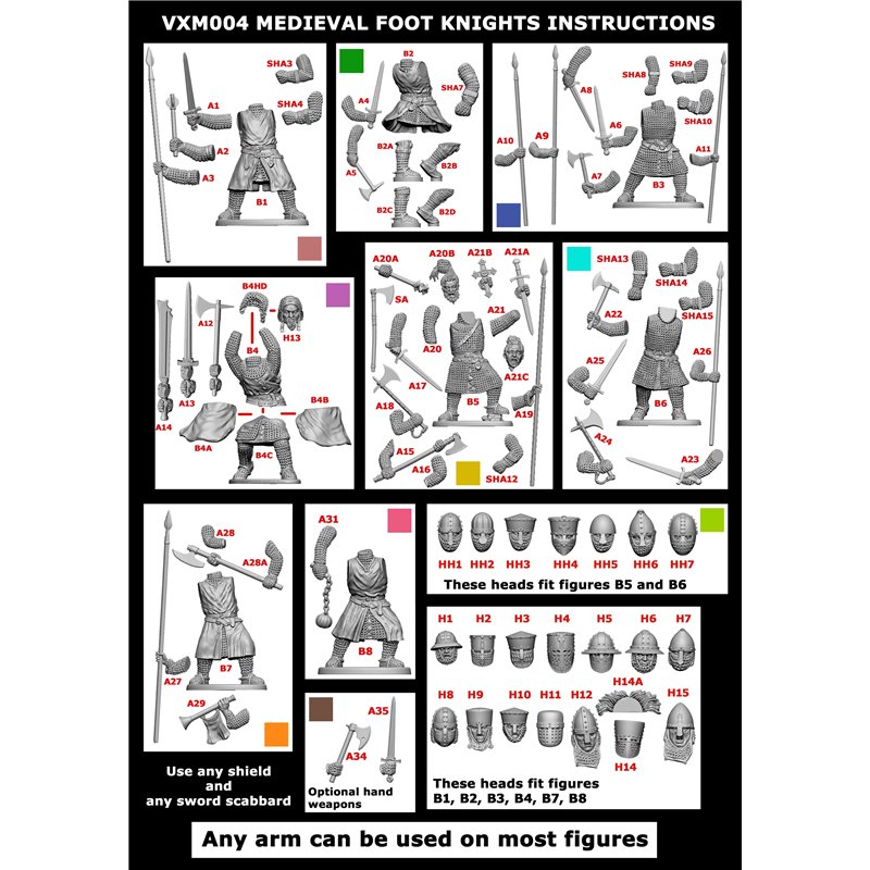 Medieval Foot Knights (x32) - 1:56 scale figure kit